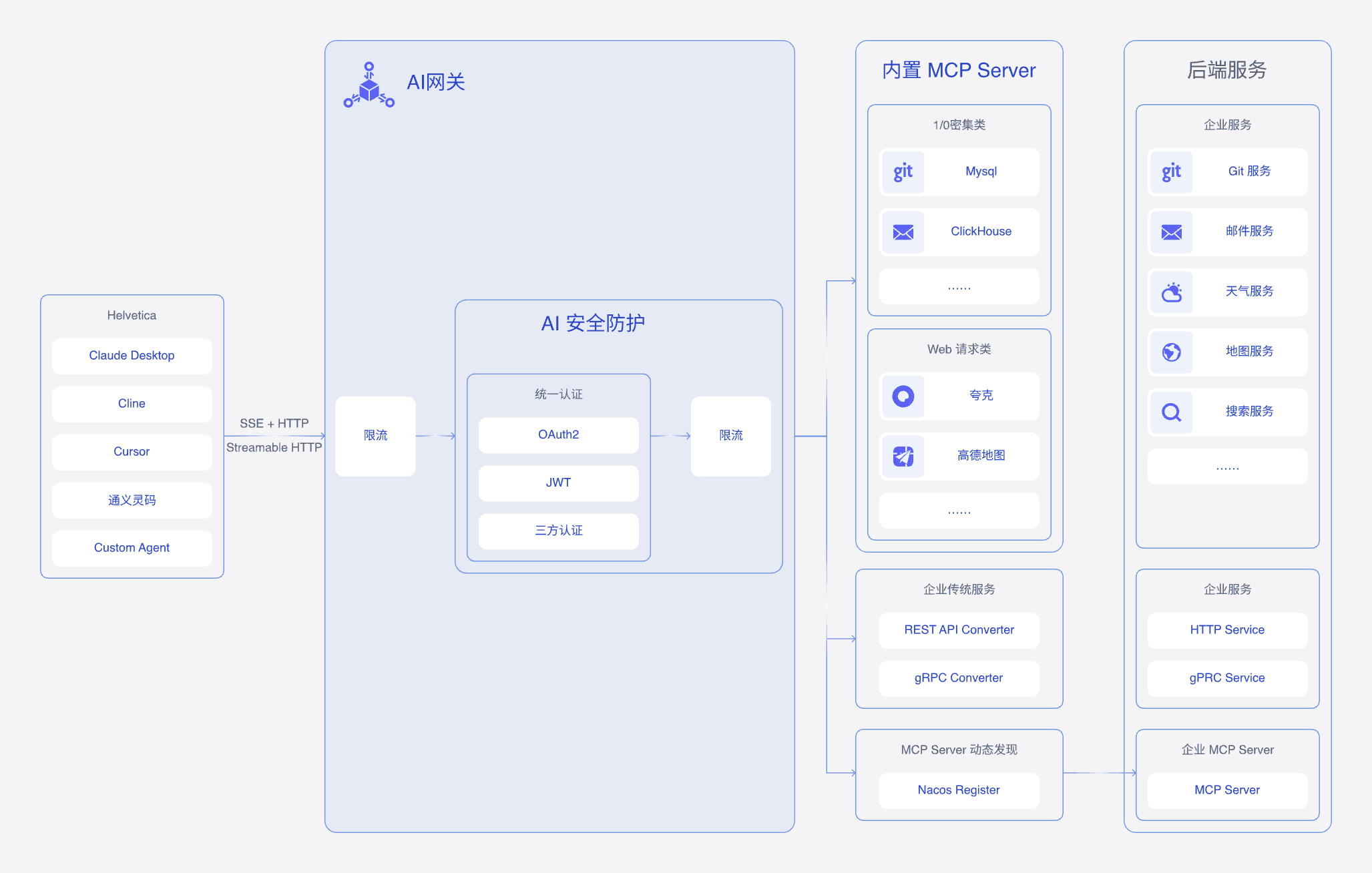 面向 MCP Server,提供 MCP Server 代理、安全认证,以及统一观测、限流等治理能力。