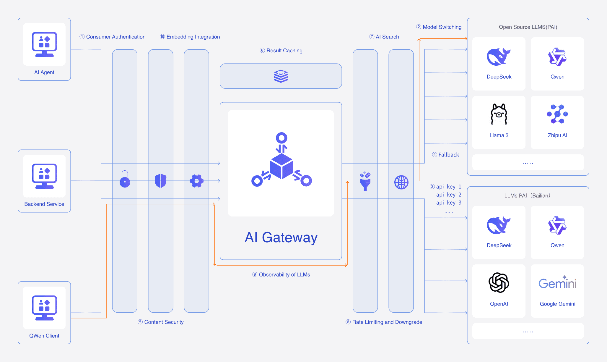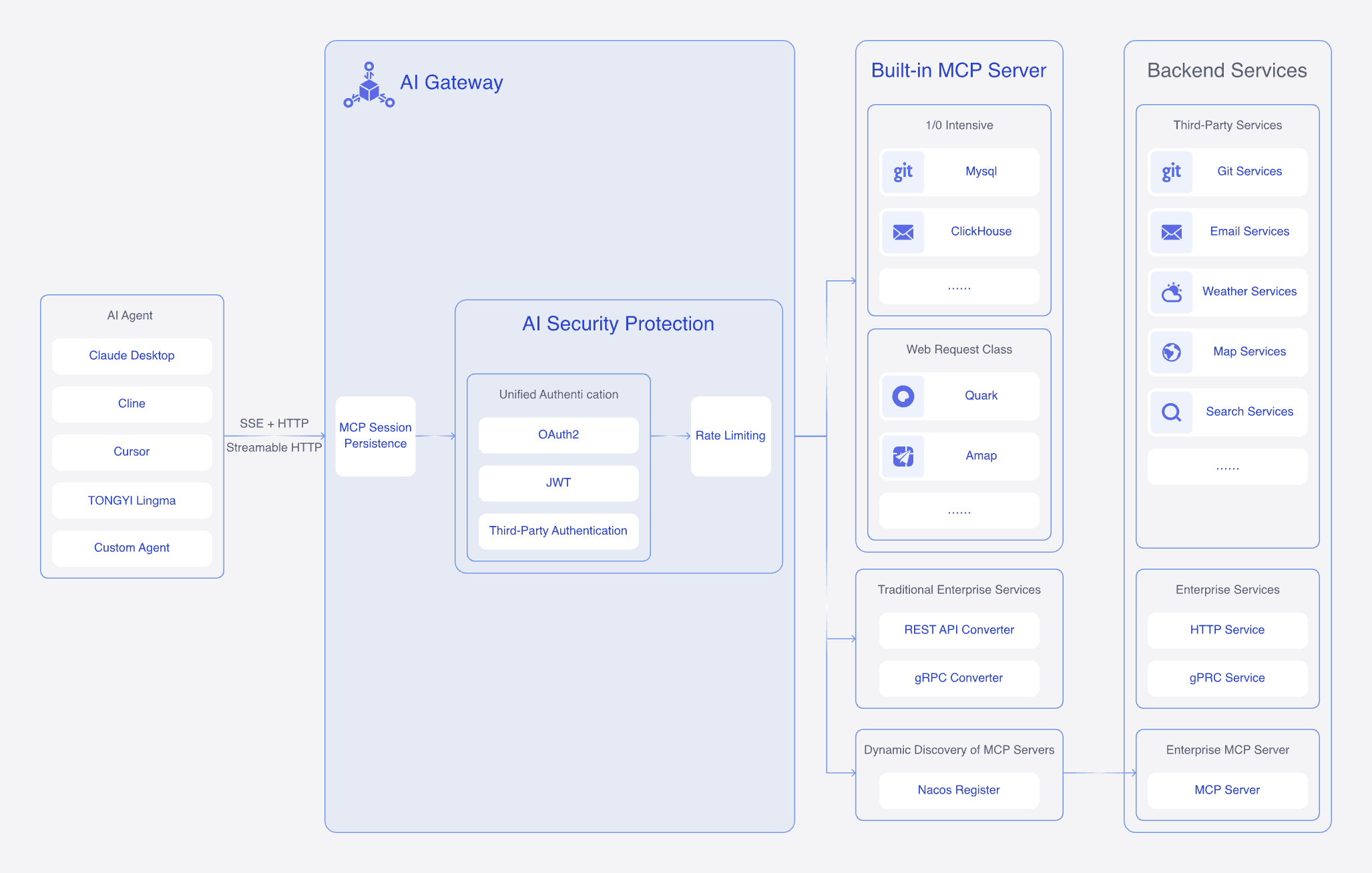AI Gateway: Specifically designed for AI scenarios, the AI Gateway serves as a unified proxy for LLM APIs and MCP Server, while offering comprehensive integration and governance capabilities.