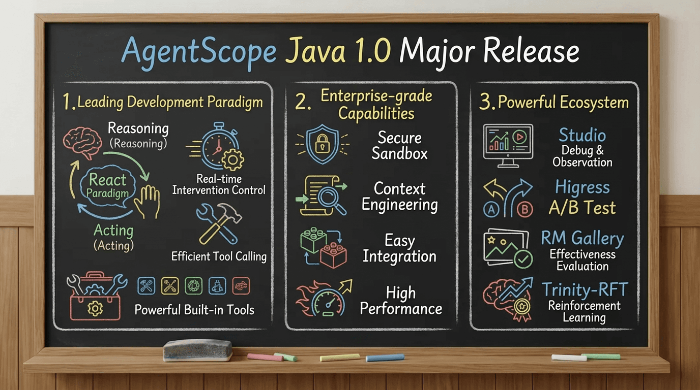 Today, we are pleased to announce that the AgentScope Java 1.0 version is officially released, providing enterprise-grade capabilities for building Agentic applications for Java developers.