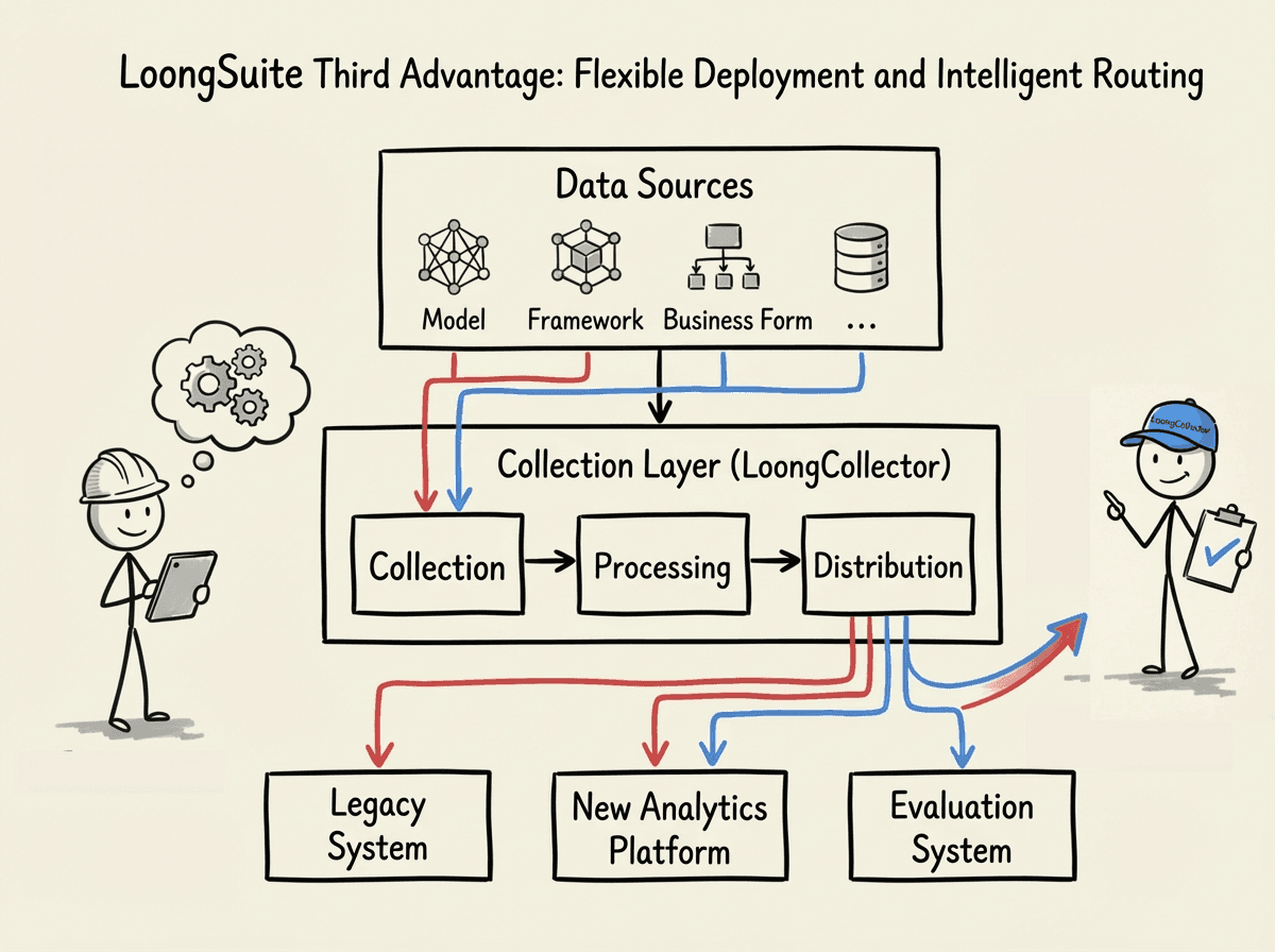 LoongCollector decouples collection, processing, and distribution through a modular architecture, allowing data from different sources and different semantics to undergo structured transformation at the collection layer and be routed to different downstream systems according to policies. This design enables engineering teams to introduce new analysis platforms or assessment systems without damaging existing systems, ensuring observability capabilities can evolve with Agent applications rather than becoming a bottleneck to innovation.