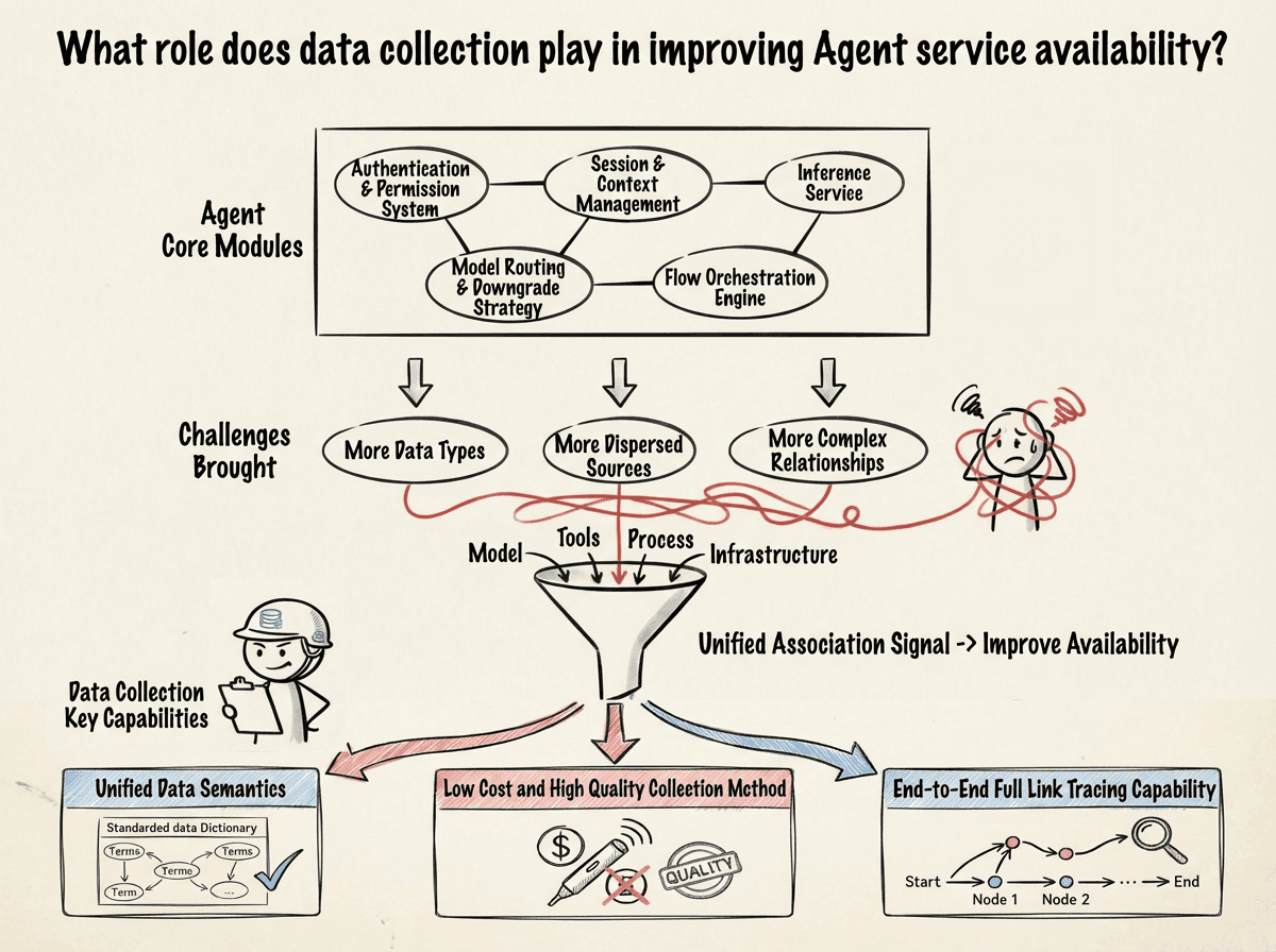 Only by unifying the signals generated by models, tools, processes, and infrastructure can we truly answer: what exactly went wrong with the system? This requires data collection to have three capabilities: unified data semantics, low-cost and high-quality collection methods, and end-to-end full-link tracking capabilities.